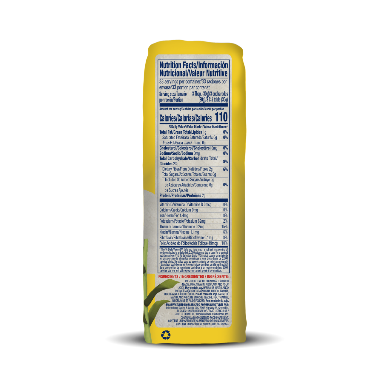 Precooked white corn meal used to prepare arepas, empanadas, hallaquitas, buns and other typical dishes. It is 100% corn.